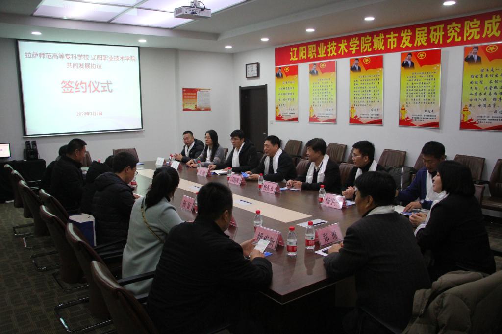座谈会上,两校领导分别发表了热情洋溢的讲话,江白校长代表考察人员向我院与会人员赠送了洁白的哈达。随后,签署了加强两校交往、促进两校交流与校合作的协议。