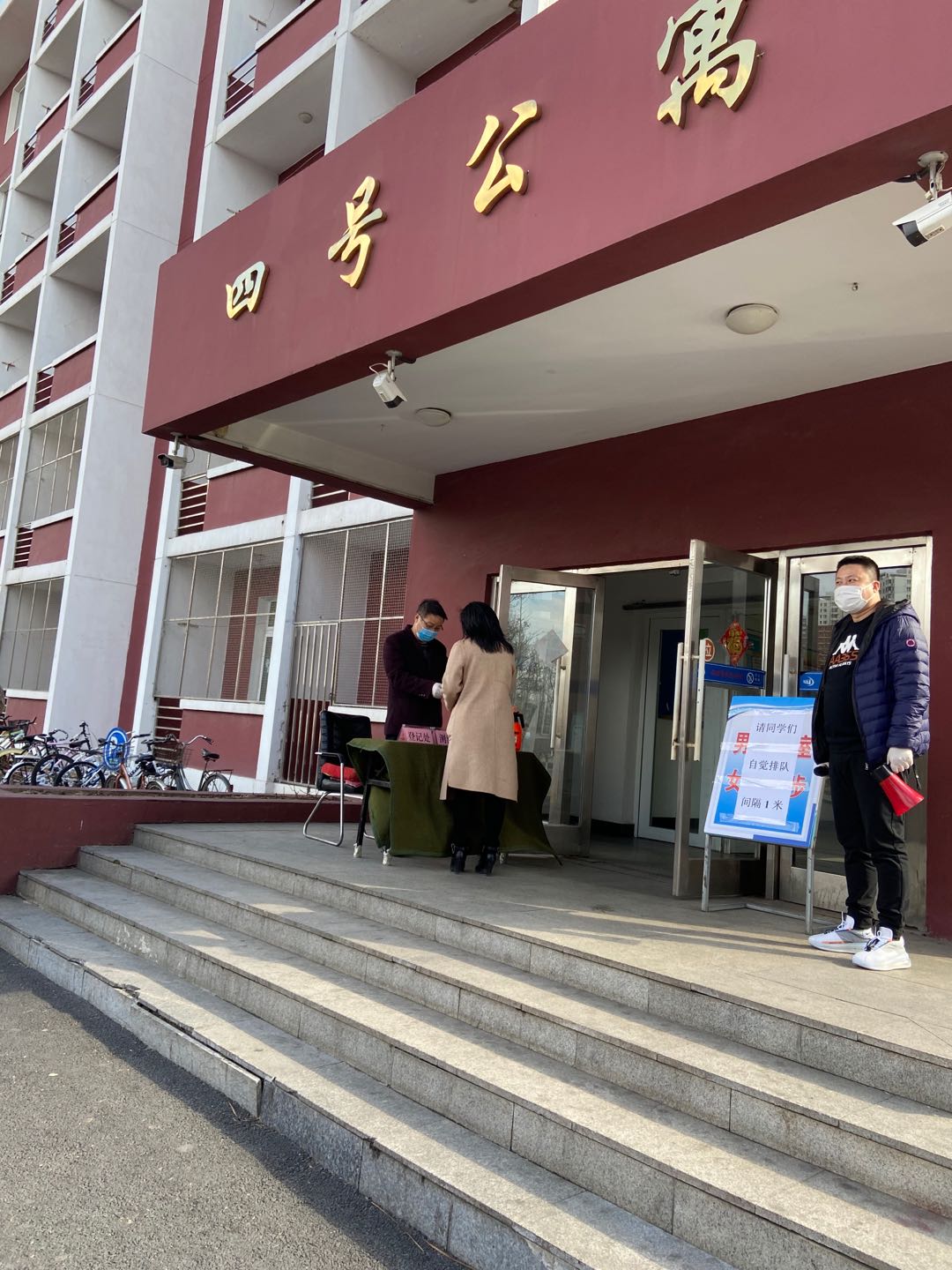 随后,疫情防控应急演练在党委副书记杨振永指挥下正式开始。为了便于学生返校,学校决定采取“错时、错峰、错区”原则返校,即规定学生返校时间段,返校年级并确立六个接待站,避免人员密集。工作人员根据应急演练方案从学院日常管理实际,将“疫情”分别设置在入校门口、教室、餐饮中心、学生宿舍、浴池和隔离室六个场景中,先由学院中层干部模拟学生进入校园登记测量出现体温过高、干咳等身体不适的“疑似症状”,再分别检验各小组应急处置能力。在演练中,应急组全体成员严格按照应急工作流程,完成人员测温、发现异常、隔离诊断、分级上报、通知家长、送医治疗、场所消毒、后续筛查等各项处置工作,并详细记录每个场景中可能出现的意外状况。整个演练过程,工作人员反应迅速、严谨细致。
