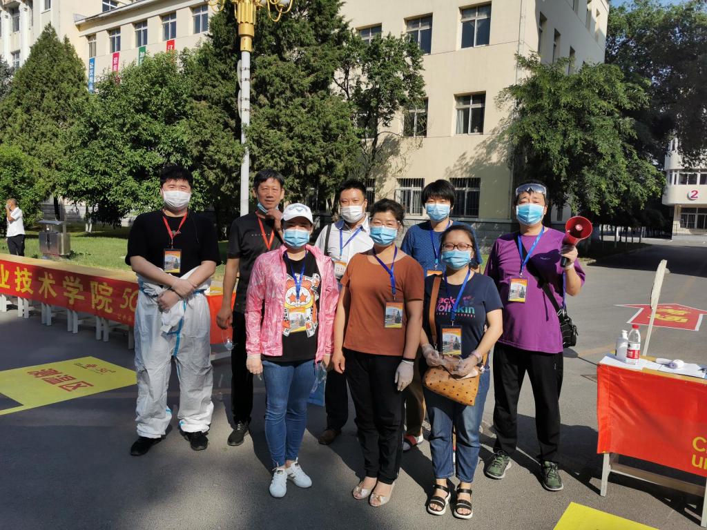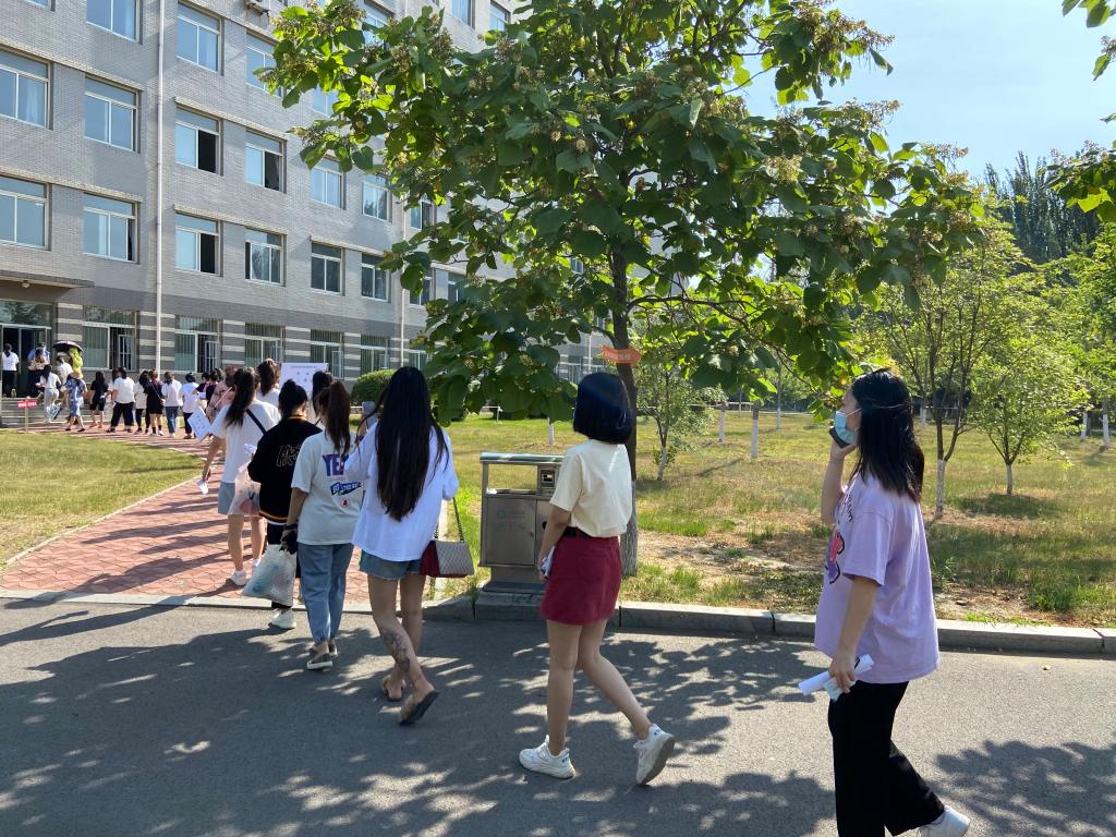 我院要求考生全程佩戴口罩,进入校园后在操场集合,保持间隔一米以上距离,由各专业的带队老师带领按照指定路线进入考场。我院考场全部按要求配备单独的隔离考场,并有卫生所的医务人员全程在岗。