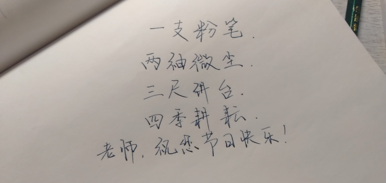 “饮其流者怀其源,学其成时念吾师。”在这个特殊的日子里,许多同学走上了实习岗位,也成为了一名老师。他们也时常想念着自己的老师,铭记着老师的教诲,将老师教给他们的东西传给更多的学生。
