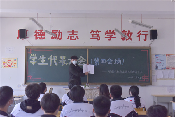 2021年11月25日,澳门新浦京3189娱乐场第二次学生代表大会在学术报告厅成功召开。25日中午12时30分,大会在雄壮的国歌声中正式拉开帷幕。党委书记闫德荣,党委副书记、院长陈丽,副院长薛秋江、衣颖、张彬出席会议,党委委员、各二级学院党总支书记、副书记、团总支书记、辅导员,以及来自各二级学院的127名学生正式代表、21名列席代表参加了本次大会。大会由团委副书记柏心怡主持。