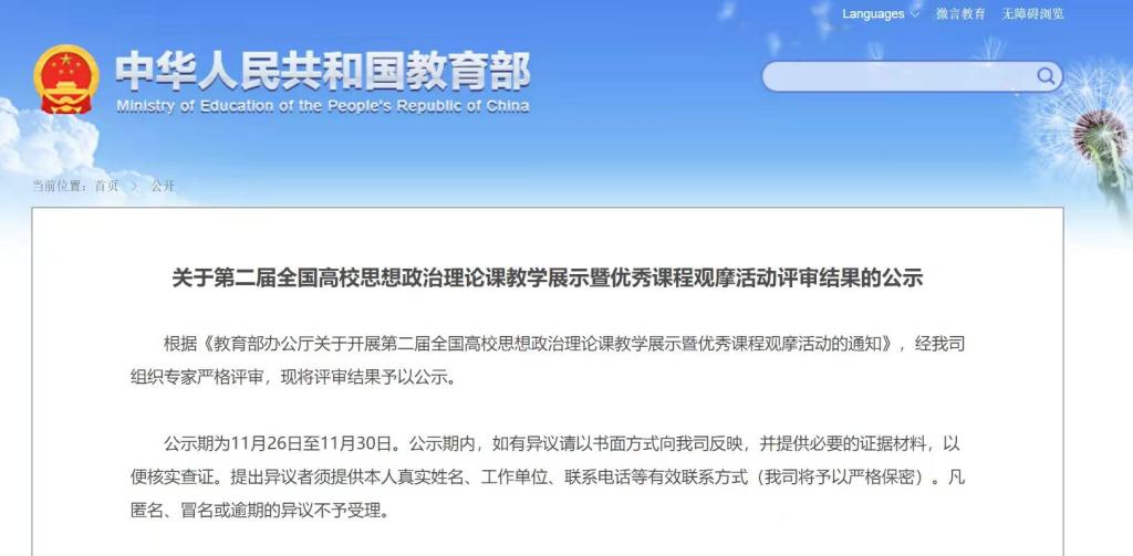 根据《教育部办公厅关于开展第二届全国高校思想政治理论课教学展示暨优秀课程观摩活动的通知》,经组织专家严格评审,现评审结果公示。