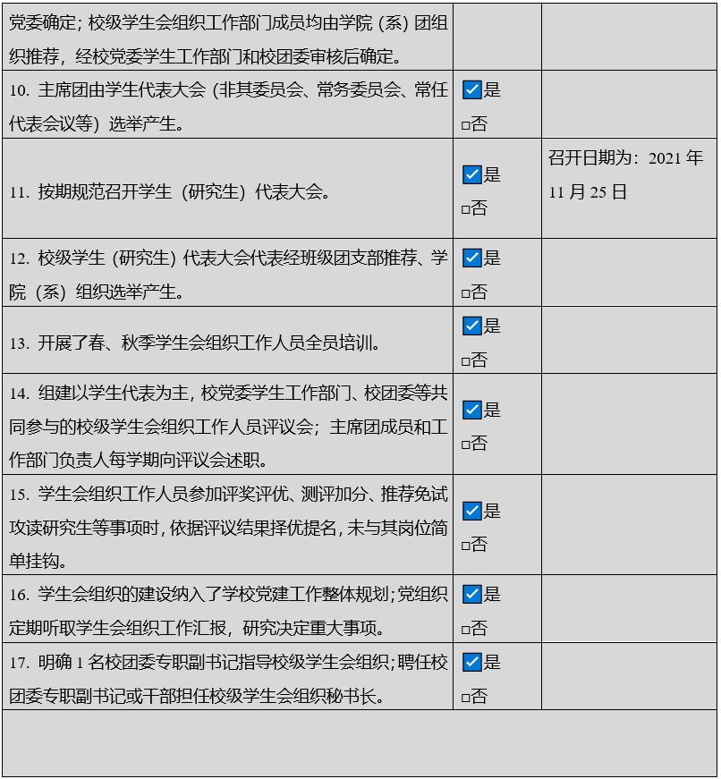为落实共青团中央、教育部、全国学联联合下发的《关于推动高校学生会(研究生会)深化改革的若干意见》,以及《高校学生会组织深化改革评估工作方案》要求,接受广大师生监督,现将我校截至2021年11月学生会改革情况公布如下。