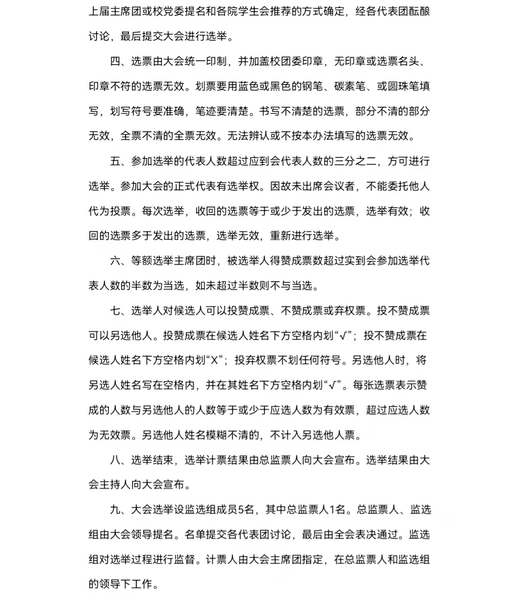 六、主席团成员候选人产生办法及选举办法