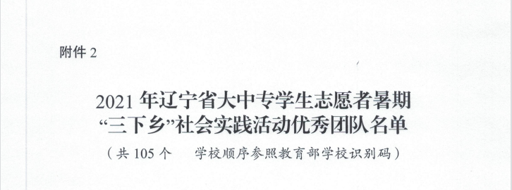 为深入学习宣传贯彻习近平新时代中国特色社会主义思想,贯彻落实习近平总书记关于青年工作的重要思想,引导和帮助广大青年学生上好“大思政课”,在观察实践中学党史、强信念、跟党走,努力成为担当民族复兴大任的时代新人,以实际行动庆祝中国共产党成立100周年,中共辽宁省委宣传部、辽宁省精神文明建设指导委员会办公室、辽宁省教育厅、共青团辽宁省委员会、辽宁省学生联合会共同开展了2021年辽宁省大中专学生志愿者暑期文化科技卫生“三下乡”社会实践活动。澳门新浦京3189娱乐场“红石榴”民族团结实践团荣获“2021年辽宁省大中专学生志愿者暑期‘三下乡’社会实践活动优秀团队”称号。