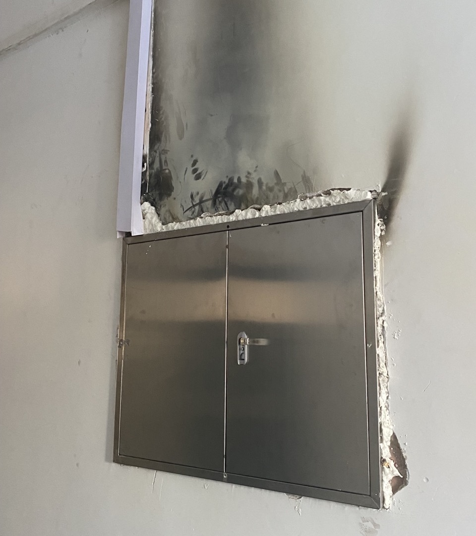 成教分院教学楼是1982年建成,年久失修,2021年11月11日当天,教学楼电源线路老化,造成线路短路并燃起明火。我院陈卫东老师得知后,立刻冲向前去,将电源切断,用干粉灭火器将明火扑灭,成功地为学校挽回了经济损失并第一时间向领导汇报情况,经请示院党委同意,立刻投入2万元,当天即对分院教学楼线路进行改造,目前改造工作已经完成,为分院师生打造了一个安全的工作和学习环境。