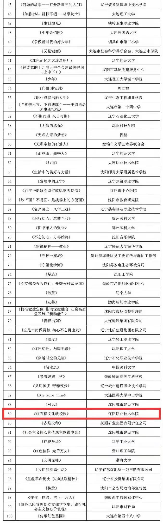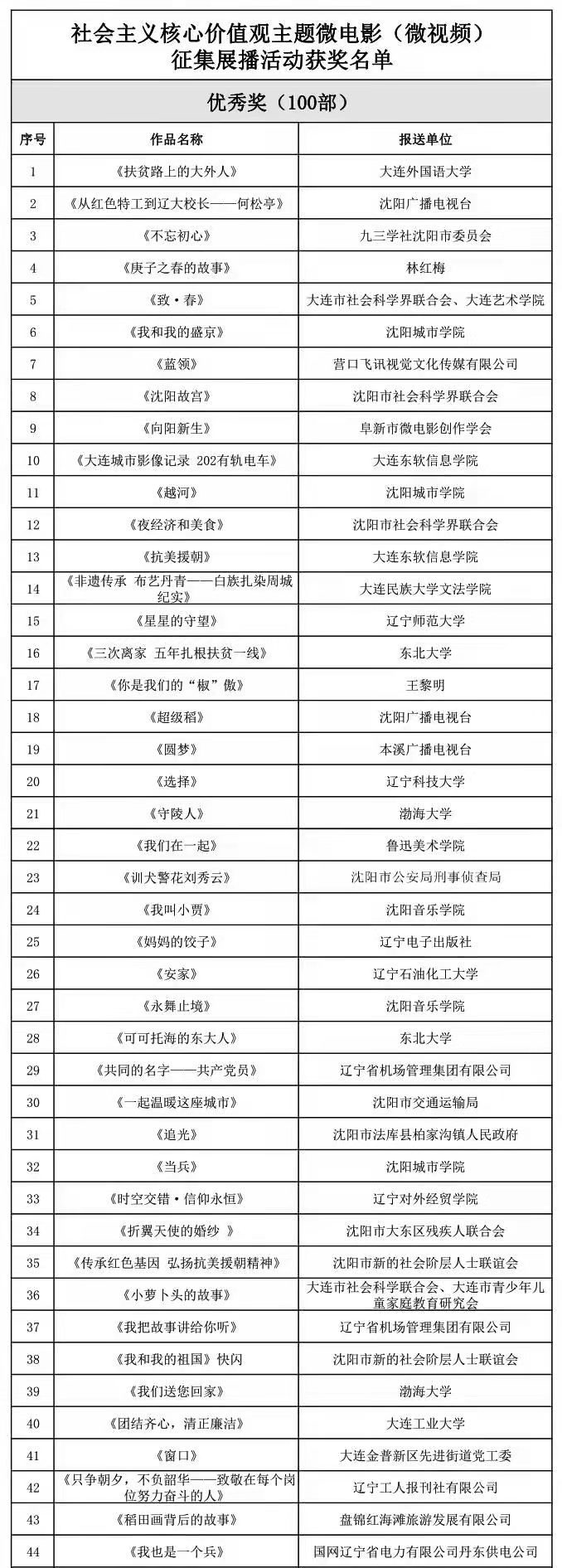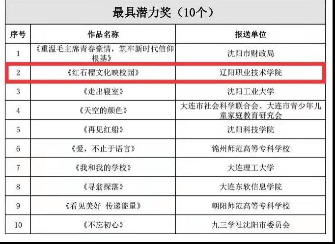 日前,由省委宣传部主办,辽宁报刊传媒集团(辽宁日报社)、辽宁广播电视集团(辽宁广播电视台)联合承办的“微影暖意·北国故事”社会主义核心价值观主题微电影(微视频)征集展播活动落下帷幕。经过网络报名、专家初评、专家复审等多个环节,我院报送的《红石榴文化映校园》微电影斩获“优秀奖”和“最具潜力奖”两项大奖。