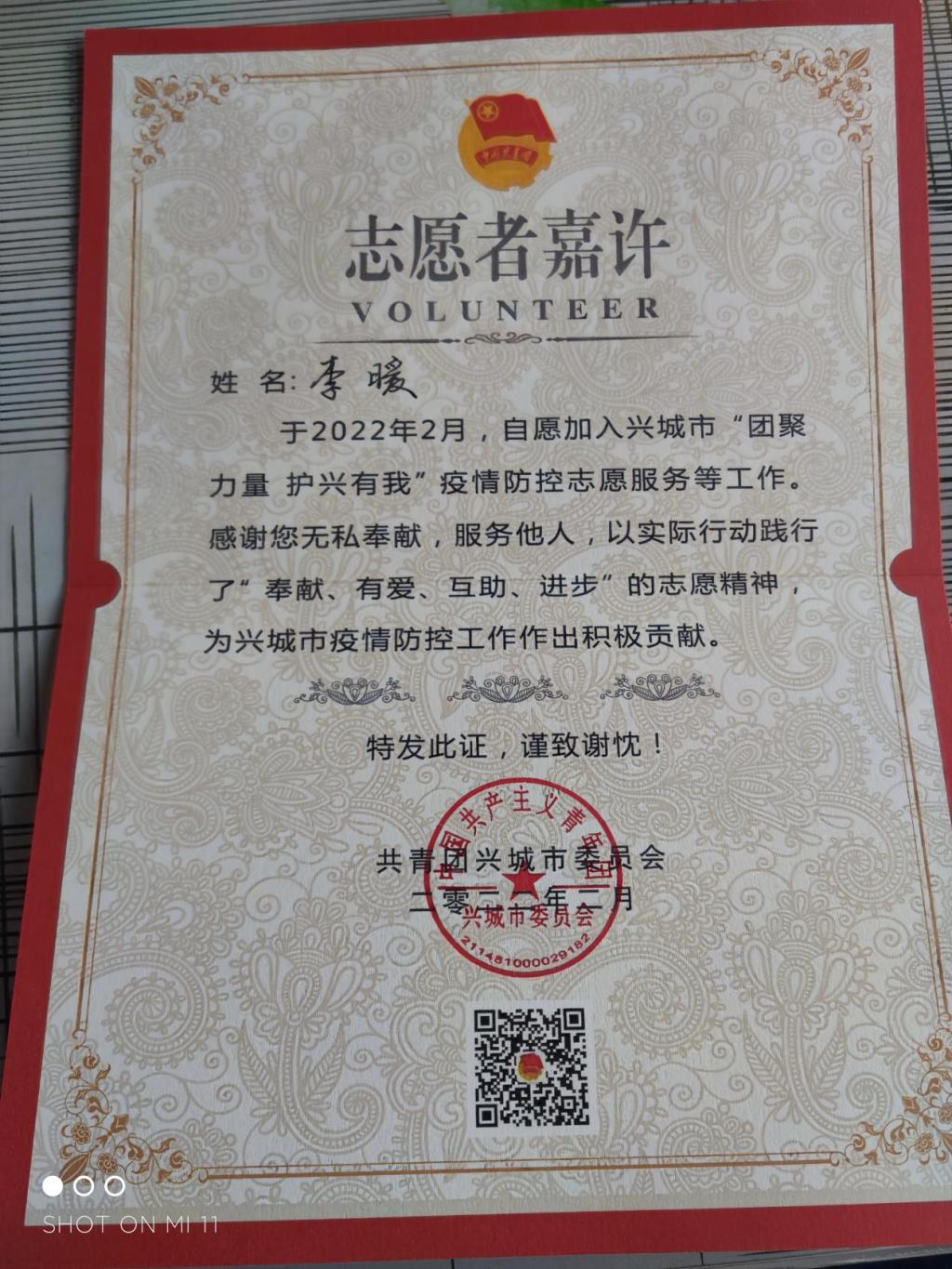 抗疫志愿者这个身份带给我很多很多,我很荣幸能为祖国尽一份力,在这里,我祝愿疫情早日结束,愿我们的祖国永远繁荣昌盛!