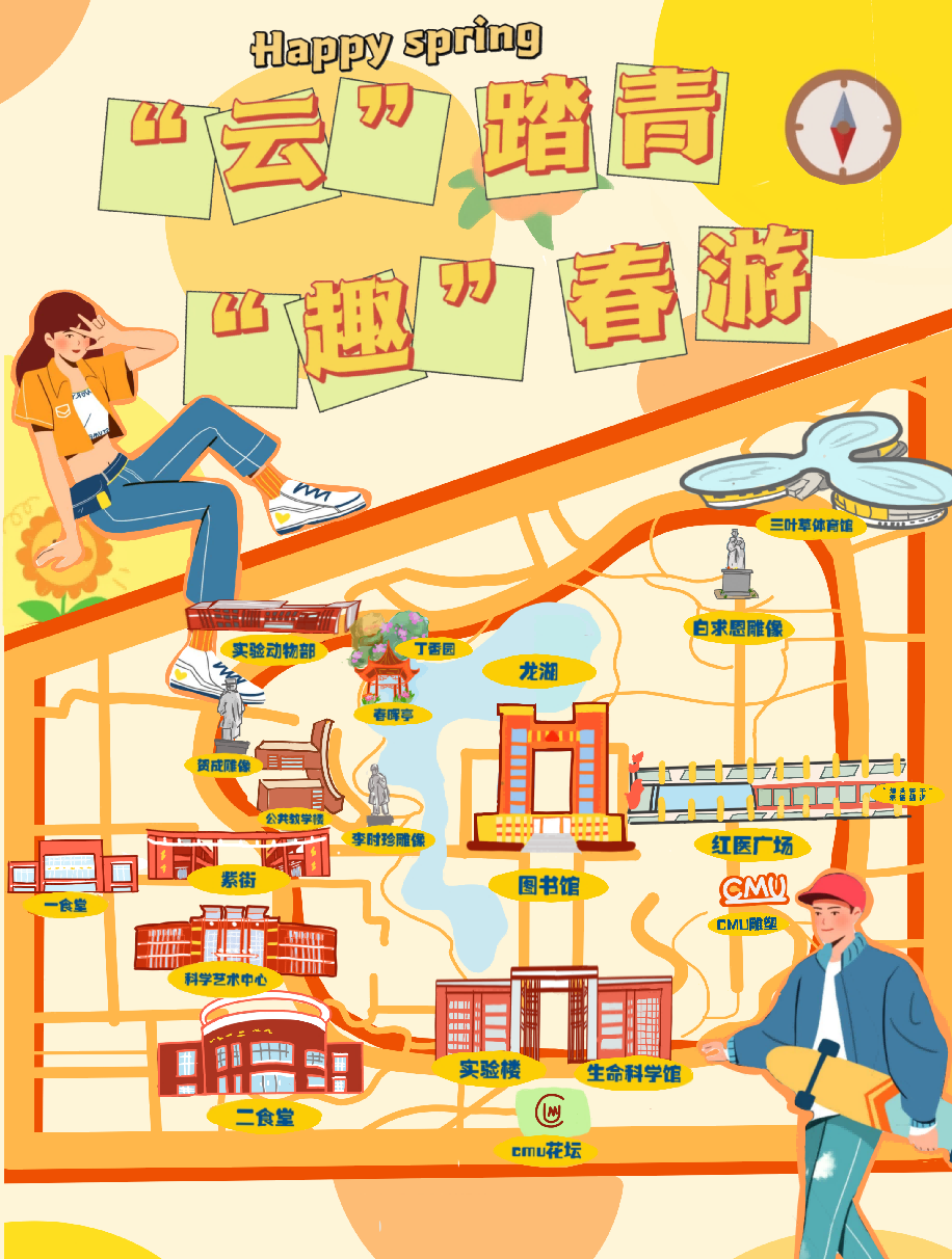 中国医科大学举办“云”踏青,“趣”春游——解锁校园地图摄影活动。活动要求从二十个规定打卡点中选取两个以上医大标志性建筑进行拍照打卡,捕捉校园建筑里的好春光,展现春日的郁郁青青。
