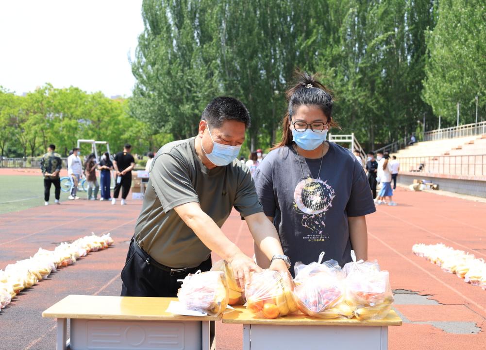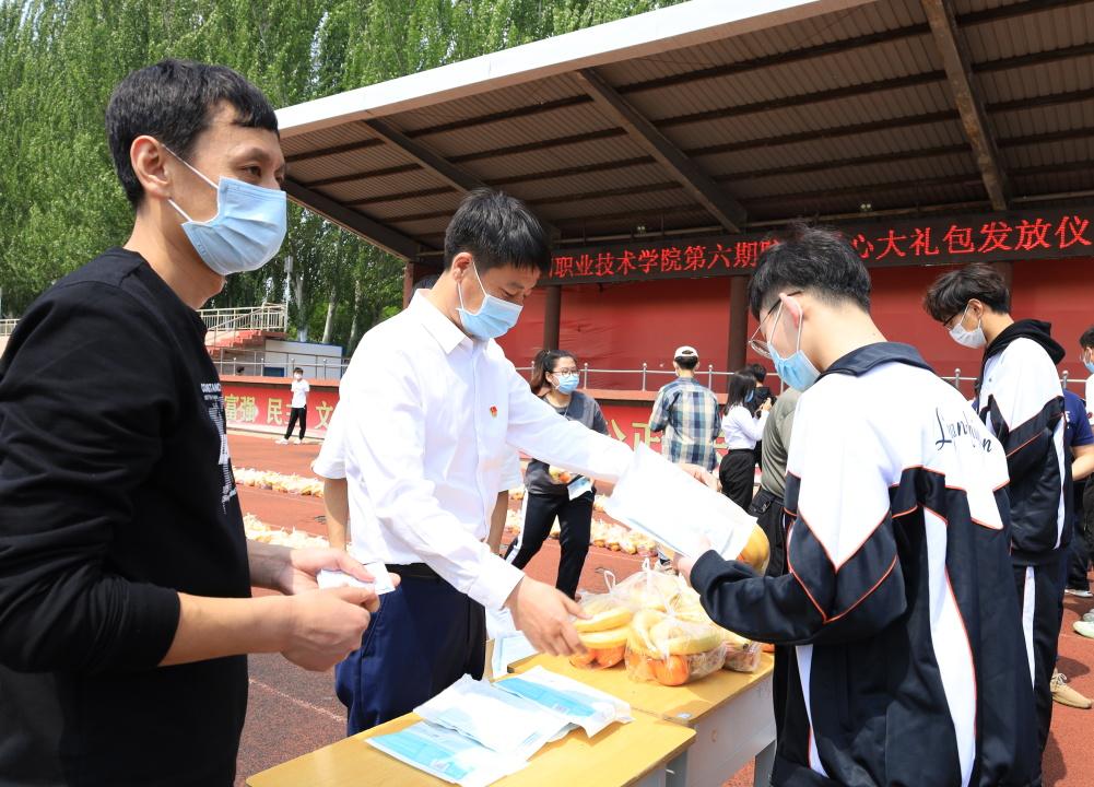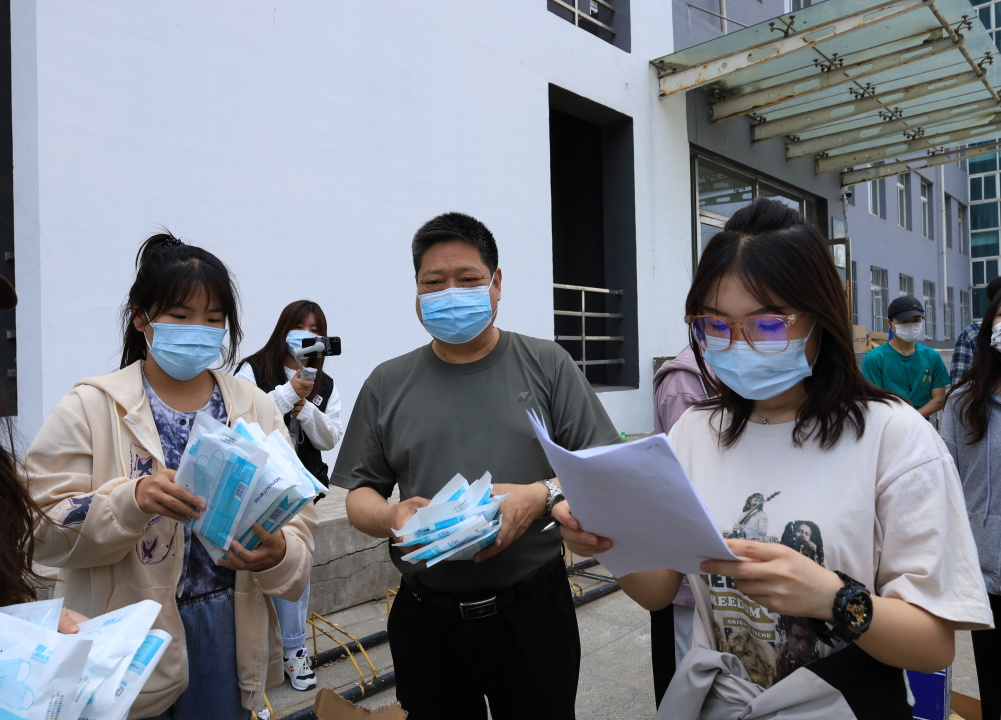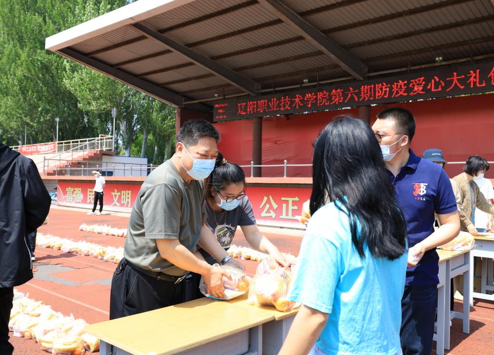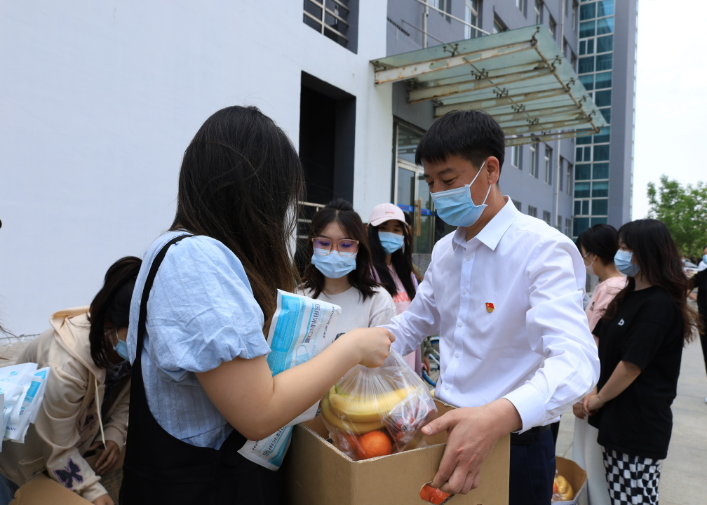 5月17日,澳门新浦京3189娱乐场第六期防疫爱心大礼包发放仪式在校园内有序开展。党委书记闫德荣,党委副书记、院长陈丽,副院长薛秋江、张彬带领驻校教师为学生发放防疫爱心礼包,表达澳门新浦京3189娱乐场对封闭在院的所有学生关爱。封校管理以来,给学生们发放新鲜水果组成的防疫爱心大礼包,已经成为澳门新浦京3189娱乐场学生最期待的礼物了,初夏时节,新鲜水果带来的清爽滋润着每一个辽职学子的心,一包口罩带给每一名学生疫情下最需要的安全。