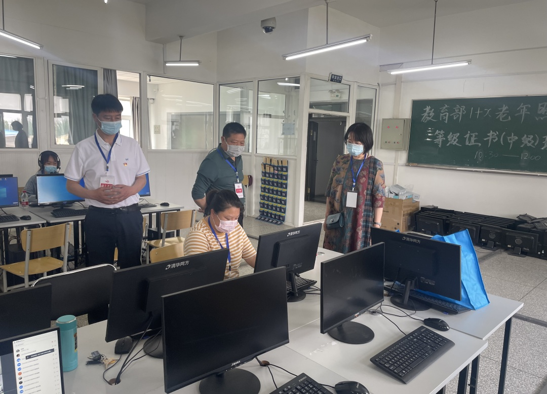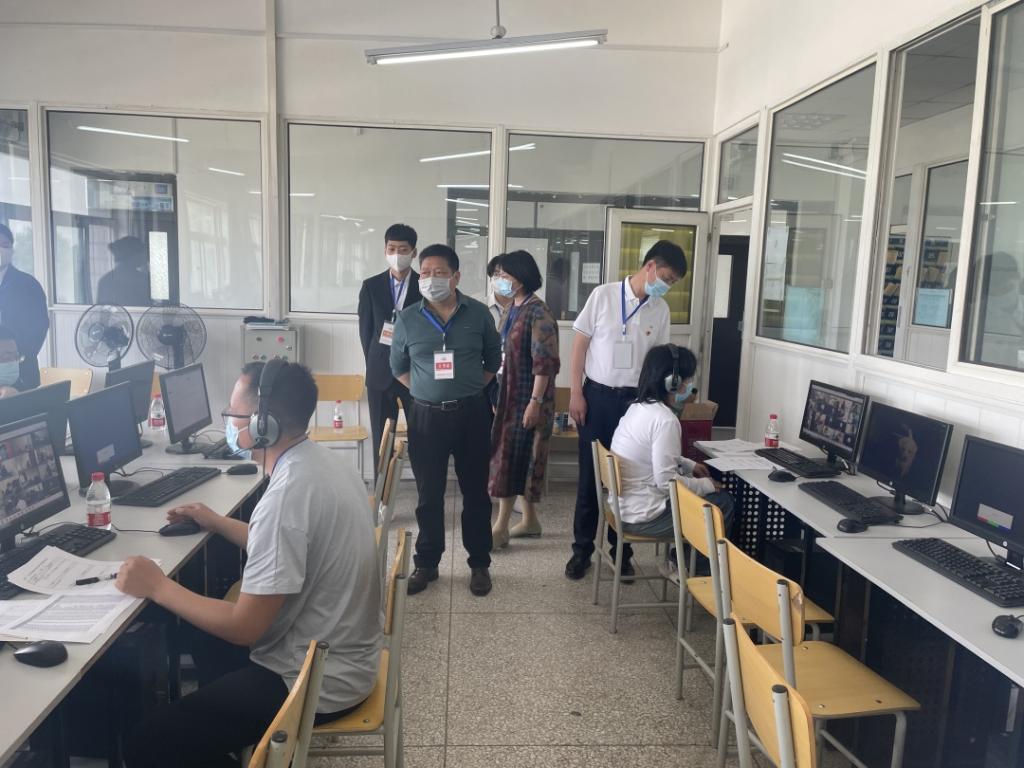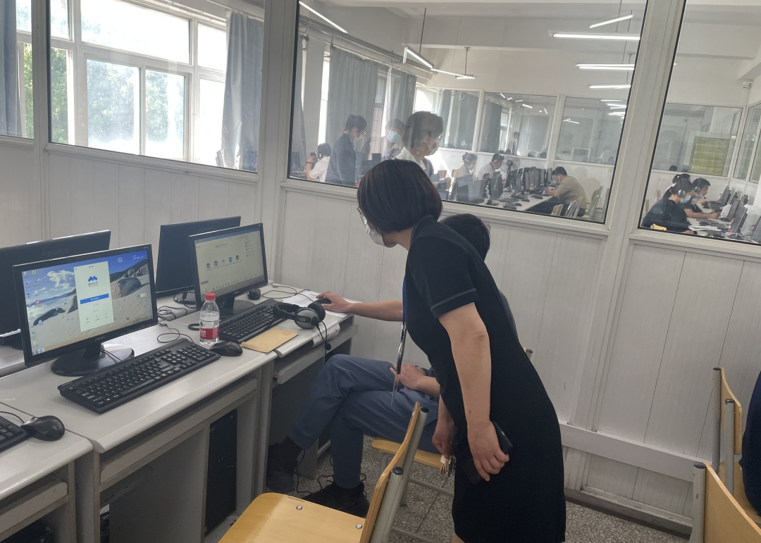 5月19日上午8:30分,82名监考教师准时来到线上监考机位,上午9点,考试正式开始,党委书记闫德荣,院长陈丽,副院长薛秋江、张彬来到单招考试监控中心现场,实地查看考试情况及考场监考情况,并对整个监考和考务工作进行指导和调度,副院长衣颖在校外通过视频连线的方式对考场和考务等相关工作做了安排和部署。