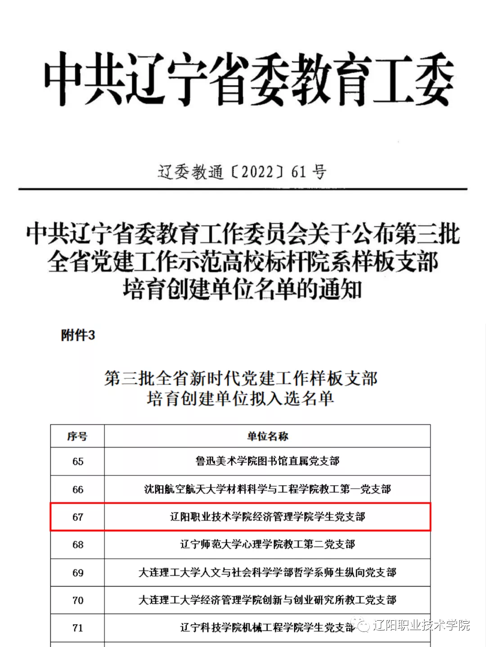 近日,辽宁省委教育工委公布了第三批全省党建工作示范高校、标杆院系、样板支部培育创建单位名单。澳门新浦京3189娱乐场经济管理学院学生党支部入选第三批“全省新时代党建工作样板支部”培育创建单位。