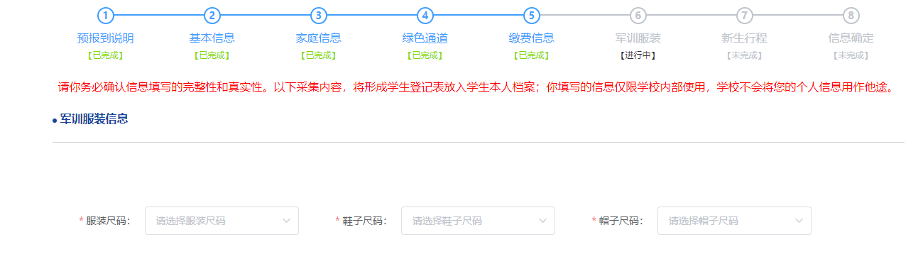 其他信息包括:军训服装信息、学生到校信息。如下图: