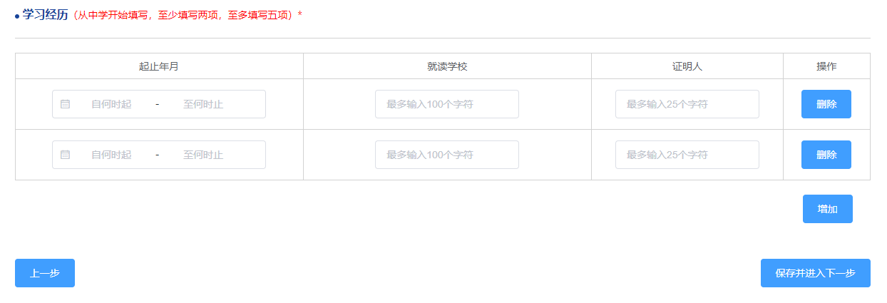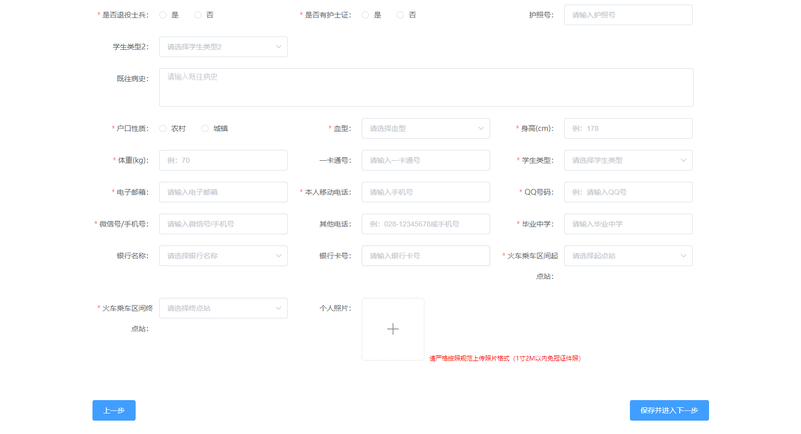 个人信息登记页面,由学生填写个人基本信息,按照提示填写即可。