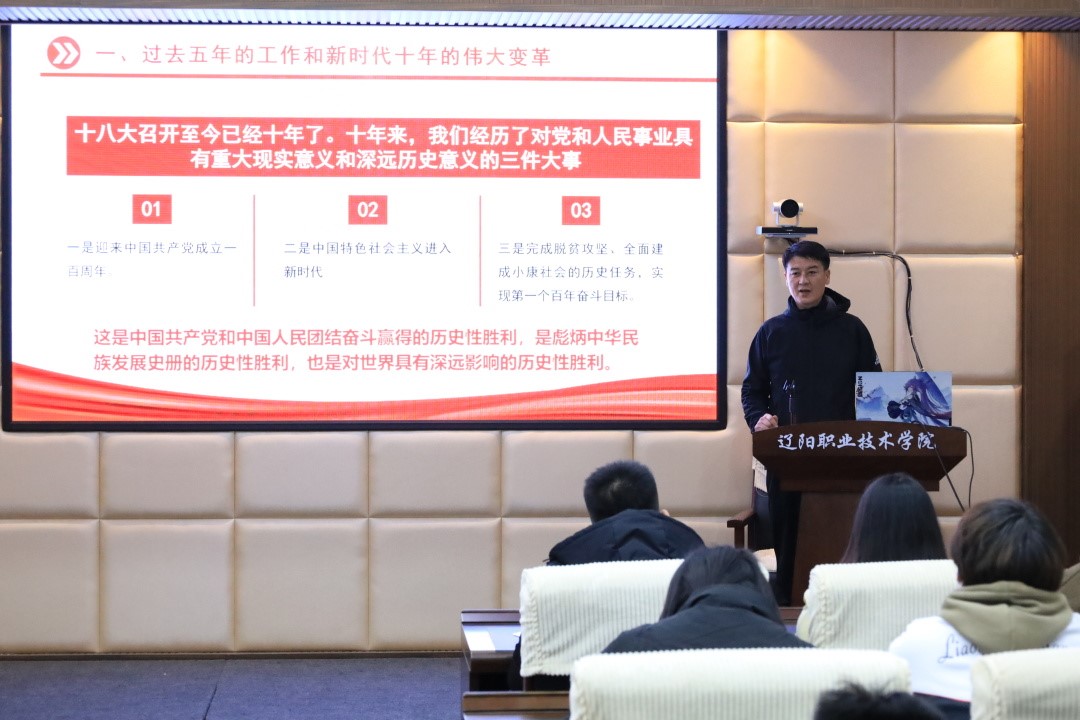凝心聚力跟党走,踔厉奋发谱新篇。认真学习、深入领会、大力宣传、全面贯彻党的二十大精神,是当前和今后一个时期我们的首要政治任务。我院党委高度重视,以上率下,迅速行动,学校掀起了学习党的二十大精神的热潮。11月16日至12月4日,学院党委书记杨延斌,党委副书记、院长陈丽,副院长薛秋江、衣颖、张彬、李健分别走进课堂,面向全校学生讲授了六场“学习二十大 建功新时代”专题思政课。