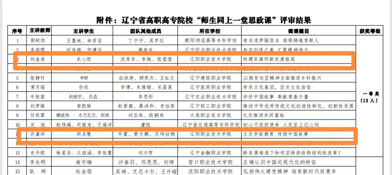 本次活动,共收到来自省内29所高职高专院校七十余部参赛作品。通过专家评审,共评选出一等奖作品13部,二等奖作品21部,三等奖作品35部。我院刘金凌老师主讲的《构建双循环新发展格局》和许嘉洋老师主讲的《立足学前教育,传扬中国故事》双双荣获一等奖。