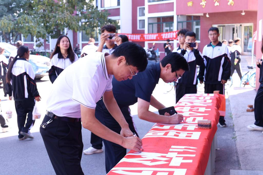 活动现场,大学生融媒体中心的志愿者向路过的师生宣传并普及两个活动主题的相关政策及内容,并引导大家在标语横幅上签名,学院领导率先在标语横幅上郑重地签上自己的名字,师生们紧随其后,踊跃签名,整场活动热烈而有序,营造了人人参与的浓厚氛围,大家纷纷表示将积极参与到主题宣传活动中来。