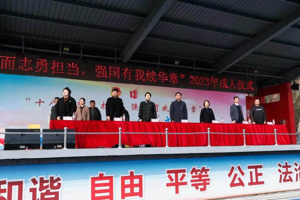 成人仪式在雄壮的国歌声中拉开帷幕。