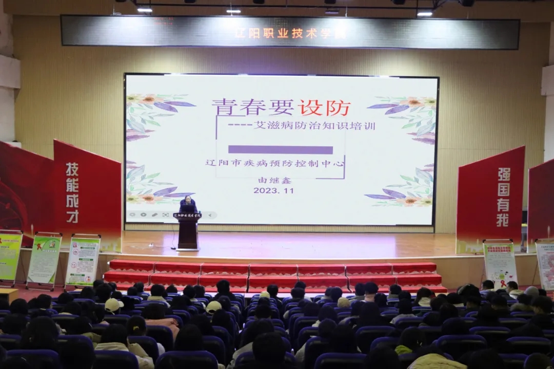 为扎实做好艾滋病防治教育工作,普及相关知识,增强学生自我保护意识,我院以第36个“世界艾滋病日”为契机,于11月29日下午在大学生活动中心开展了主题为“艾滋在身边,青春要设防”的校园艾滋病防治知识专题讲座。此次活动由团委和卫生所联合举办,辽阳市疾病预防控制中心性病艾滋病防治科科长由继鑫主讲。
