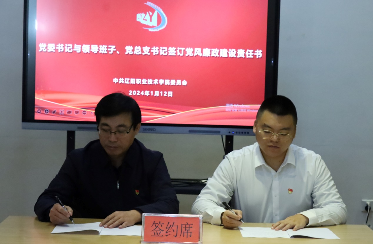会上,按照学院党风廉政建设工作部署,杨延斌分别与领导班子和各党总支(直属党支部)书记签订了2024年度党风廉政建设责任书。通过签订责任书,进一步强化了主体责任和“一岗双责”,形成“一级抓一级,层层抓落实”的工作局面,有力地推动了党风廉政建设工作。