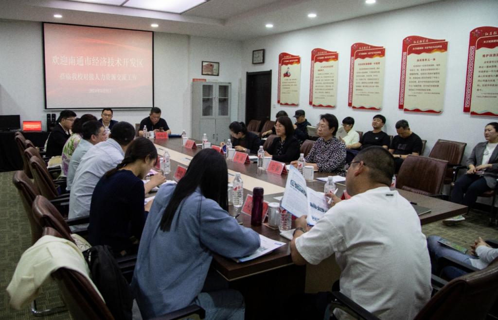会上,陈丽代表学院对翟敬东一行的到来表示欢迎,对市就业和人才服务中心表示感谢,并介绍了学院的办学历史、专业设置、招生就业等基本情况。翟敬东介绍了南通经济开发区的企业概况、用人需求和人才政策等相关情况,并表达了与我院开展政校企合作的意愿。随后,南通天盛新能源股份有限公司、中天科技集团、南通农药化工股份有限公司、精技电工(南通)有限公司分别介绍了各企业的人才需求情况。与会人员就共建政校企合作平台、推动人才联合培养、服务企业发展等内容进行了深入研讨,并达成了合作共识。会后,我院与南通市经济开发区签署了人力资源战略合作协议,为进一步开展合作奠定良好基础。