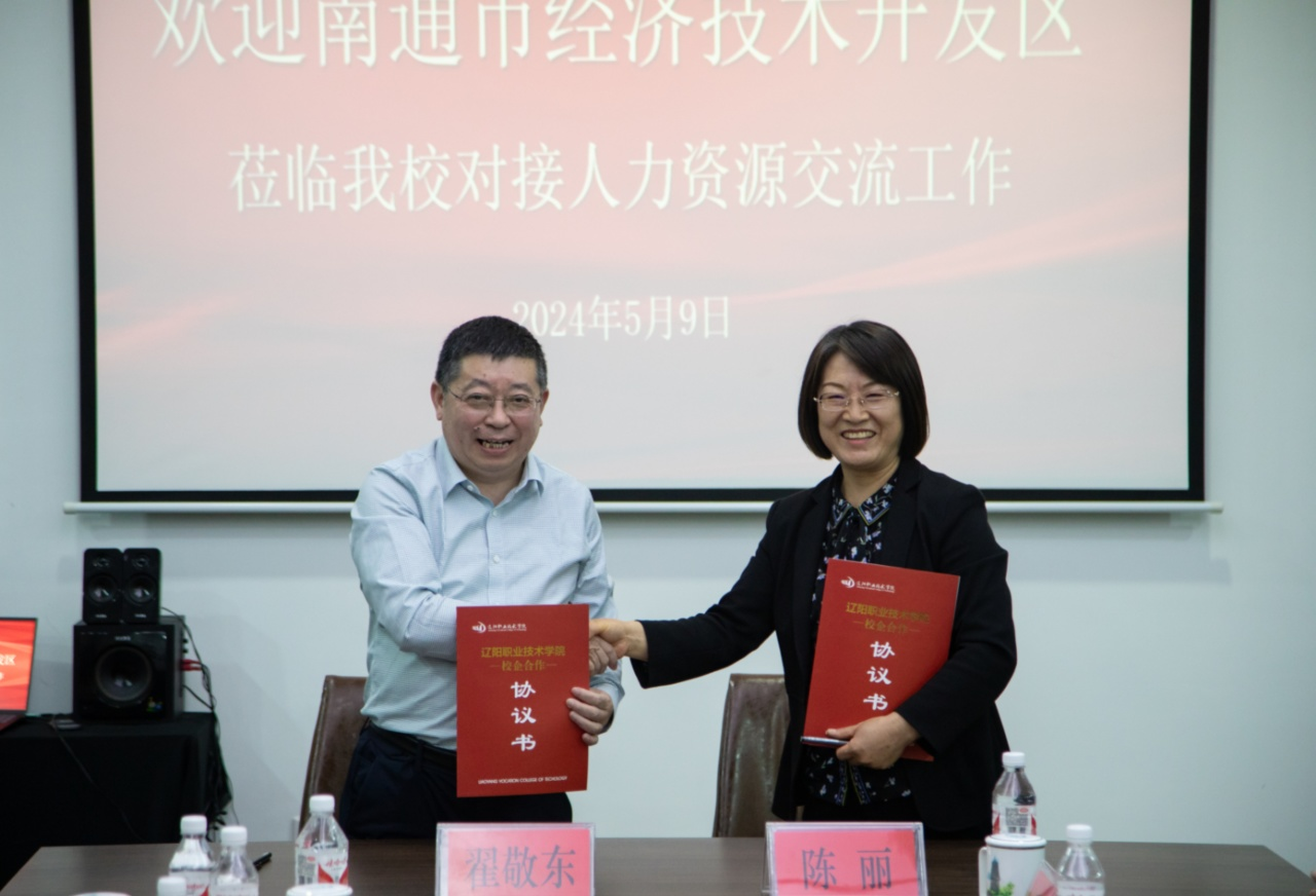 5月9日,在辽阳市就业和人才服务中心副主任张晓丽的陪同下,江苏省南通市经济开发区委组织部副部长翟敬东、就业服务中心主任黄蓓一行携辖区内4家企业负责人来我院洽谈政校企合作事宜。院党委书记杨延斌,党委副书记、院长陈丽,副院长衣颖率队迎接。来宾在参观了我院各实训基地后,在综合实训基地会议室召开合作洽谈会。