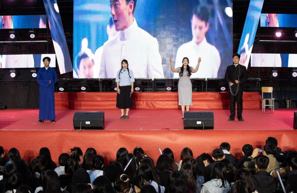 晚会在国旗护卫队和大学生心理协会全体成员带来的精彩话剧表演《五四风雷,强国有我》中落下帷幕。