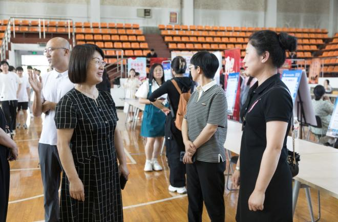 6月19日,我院2024“百日冲刺 一职为你”校园大型双选会在体育馆顺利举办,省内外106家优质用人单位入校招聘,涉及机械、汽修、教育、数媒、金融、电商、养老、化工、计算机等多个专业领域,提供就业岗位5000余个。院党委副书记、院长陈丽,副院长衣颖、赵冲、李健深入招聘会现场,并与企业深入沟通交流,详细了解企业人才需求,同时为求职学生答疑解惑,给予方向指导。