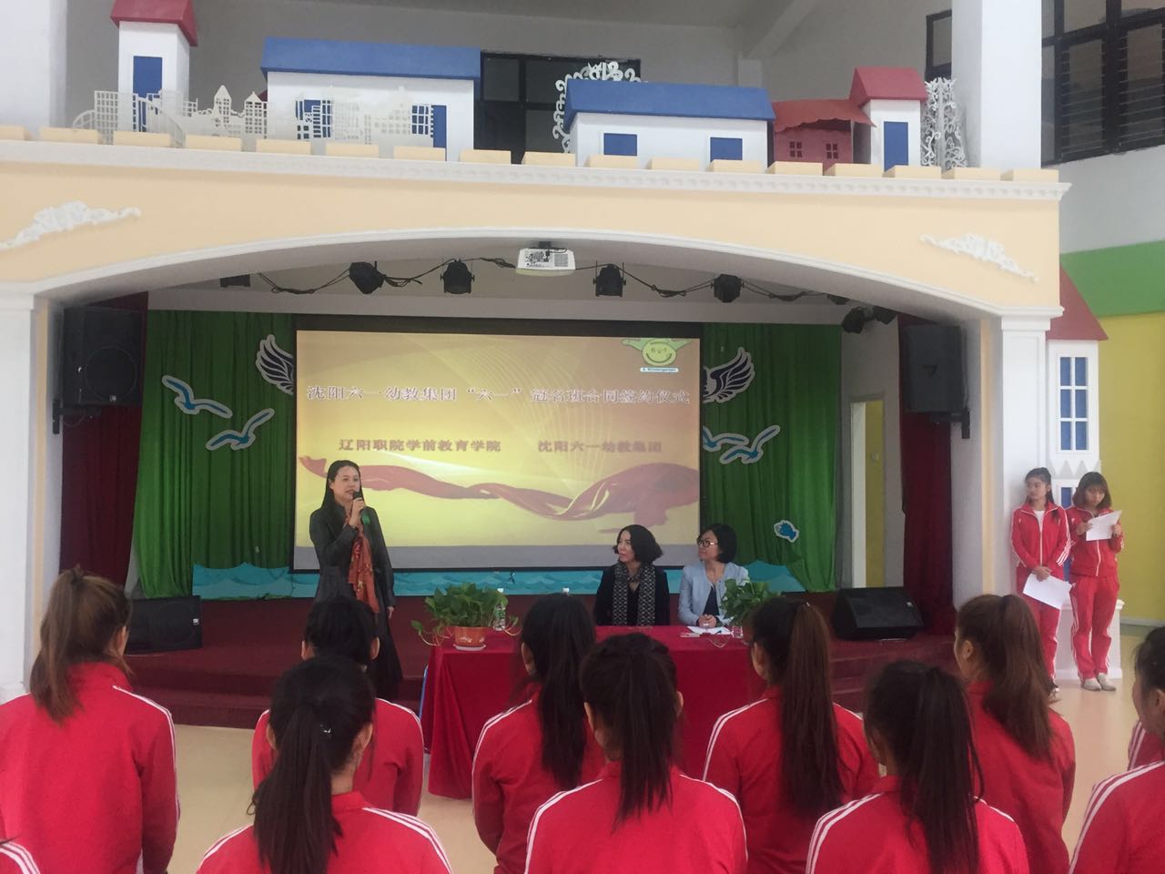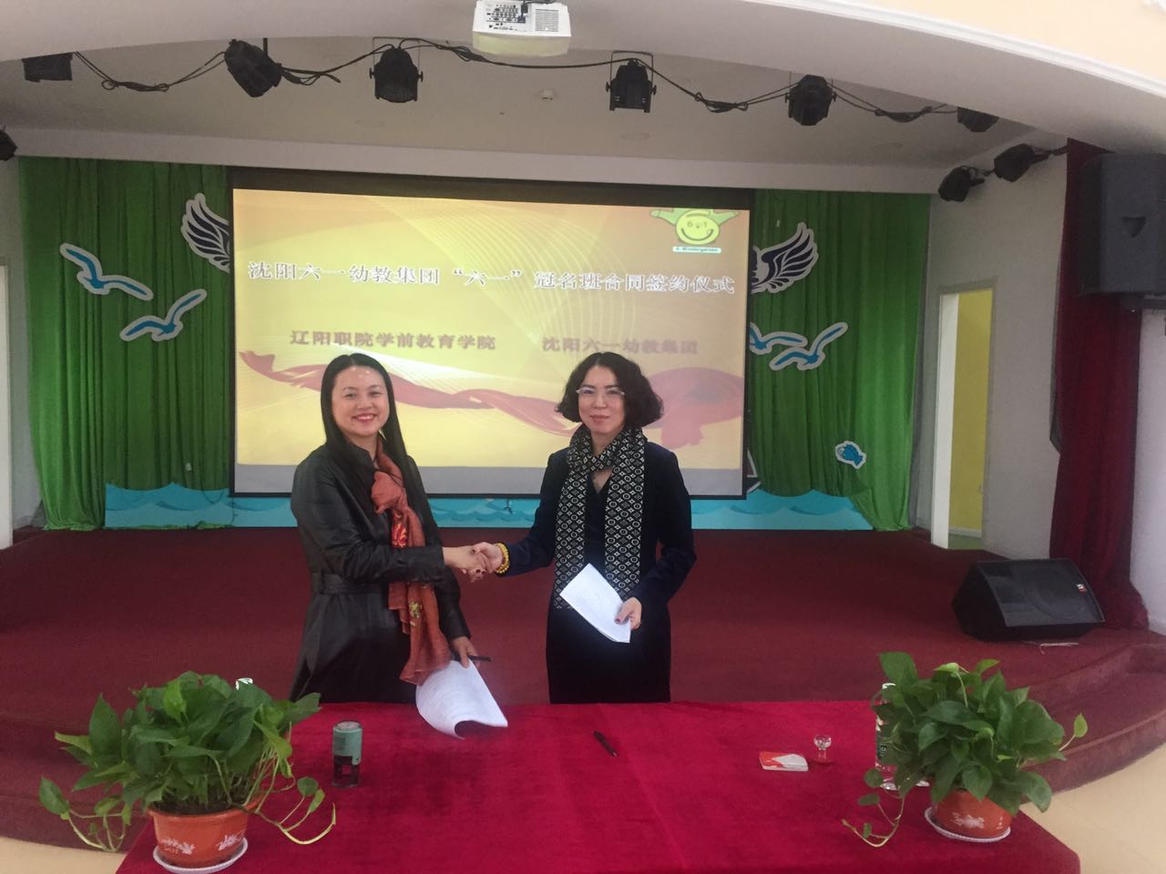 2016年10月17日下午,学前教育学院与沈阳六一幼教集团在沈阳于洪区六一幼儿园会议室正式签订校企合作冠名班协议。学前教育学院院长刘立民、副院长吕姝,沈阳六一幼儿园总园园长孙梅、分园园长徐艳凤及幼儿园的相关领导和老师出席。签约仪式由沈阳六一幼儿园的教师主持。