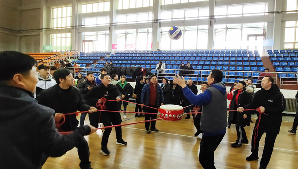 12月25日下午两点,思政分工会全体教师在思政联合直属党支部书记陈杰、思政部主任佟艳的带领和组织下,在体育馆参加了学院2020年迎新年教职工趣味运动会活动。