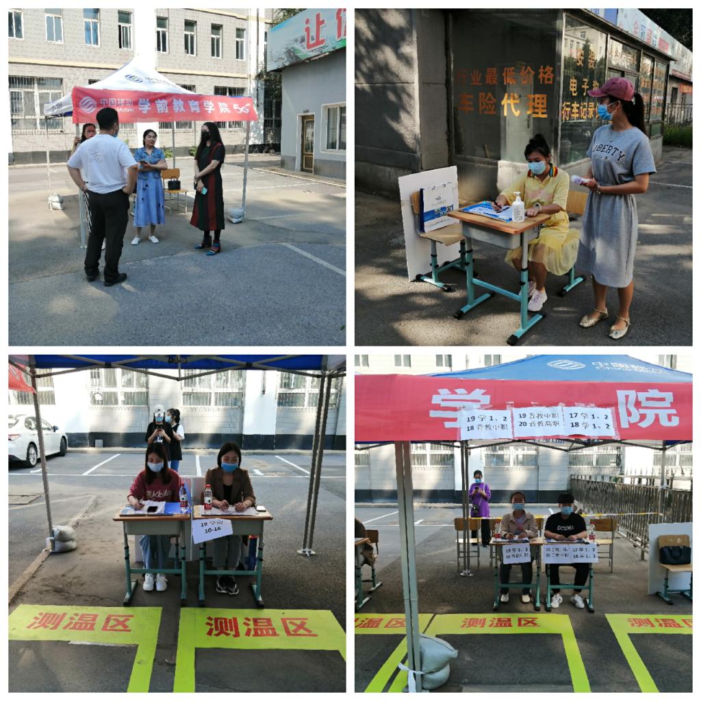 学前教育学院党总支书记于莉莉、院长刘立民、副书记杨悦、副院长吕姝,班主任及辅导员老师在校门口迎接学生返校
