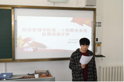 2021年4月12日,经济管理学院第二十四期业余党校暨团课在实训基地A106开班。学工办主任黄继涛参加本次活动。第二十三期优秀学员及第二十四期新生约100名学生参加。