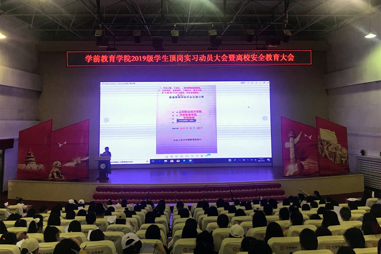 7月2日,学前教育学院在报告厅分两个场次召开2019级学生顶岗实习动员大会暨离校安全教育大会。学前教育学院的副院长吕姝、副书记杨悦、院办主任田睿、就业专干田婷婷及全体实习指导教师出席此次会议。会议由学前教育学院长吕姝主持。