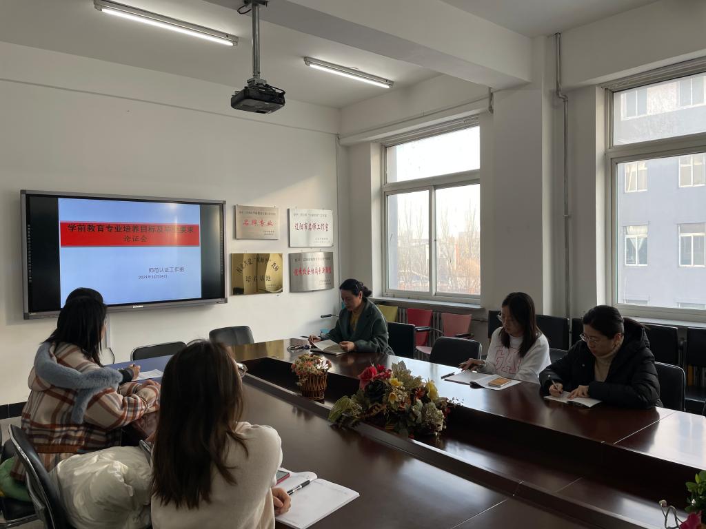 2021年11月24日下午,我院召开了师范类专业认证论证会详细对学前教育专业及音乐教育专业的培养目标及毕业要求进行论述。会议由刘立民院长主持召开,副院长吕姝,专业带头人等学前教育学院师范类专业认证工作组成员参与讨论。