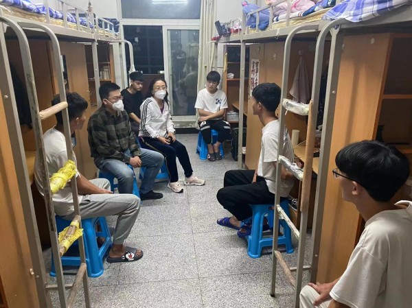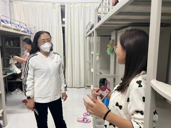 随后,全体在校教师走访了新生寝室,了解学生们的适应情况,为新生介绍学院教学及日常管理要求,并对同学们给予厚望。同时,学院领导十分重视寝室的卫生防疫工作,提醒同学们做好个人健康监控,及时通风消杀,做好自己的“第一责任人”。通过走访,使新生们感受到了来自学院领导、老师、学长的关心和温暖,让学生安心,让家长放心。