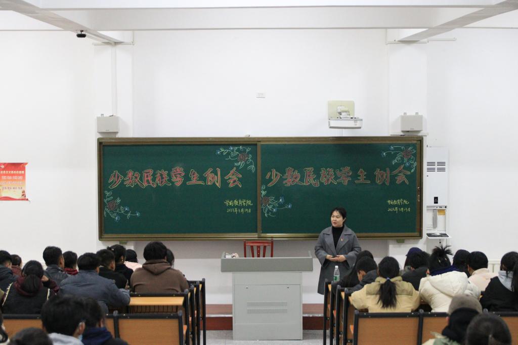为扎实推进少数民族学生教育管理服务工作,进一步了解我院少数民族学生的学习和生活情况,做好新学期学生学习、生活和安全教育工作,引导学生树立正确的消费观,3月13日晚6:30至8:30在实训楼101,学前教育学院党总支书记于莉莉分别召开21级、22级西藏学生例会。