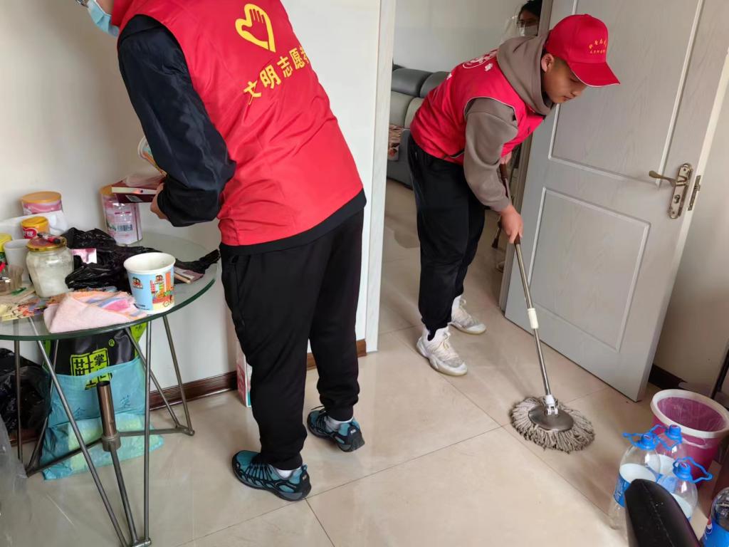 活动中,小教与设计学院的学生分工明确,分别进行了物品整理、清理,卫生死角,拖地等劳动,客厅、卧室、厨房、卫生间每个房间都焕然一新。劳动期间,残障群众被志愿者们积极主动、热情洋溢的精神面貌所感染。