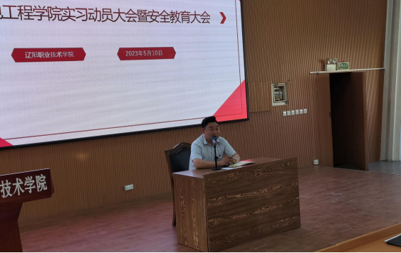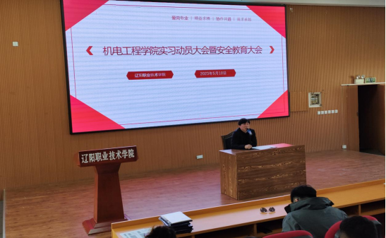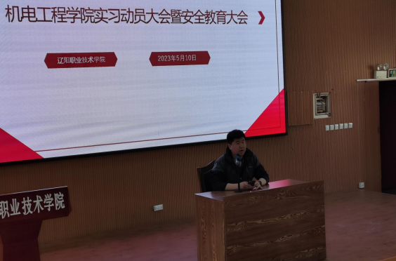 为保障2021级同学能更好的适应即将到来的实习期,更加详细的了解实习期间的规定,机电工程学院于2023年5月10下午在学术报告厅召开了机电工程学院实习动员大会暨安全教育大会。出席本次会议的有机电工程学院院长吴刚、机电工程学院副书记李森、辅导员贾震、辅导员刘思妤以及各实习班班主任和全体21级学生。