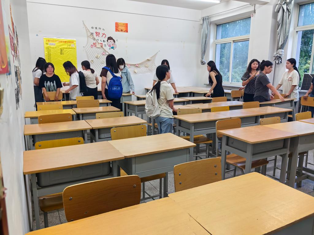 教学楼里到处涌动着他们忙碌的身影,大家组织有序、分工明确、配合默契、干得热火朝天。经过一个假期,教室里落满了灰尘,每位同学都细心认真地将教室打扫得一尘不染,将桌子摆放得整整齐齐,保证教室的每一个角落都没有灰尘。