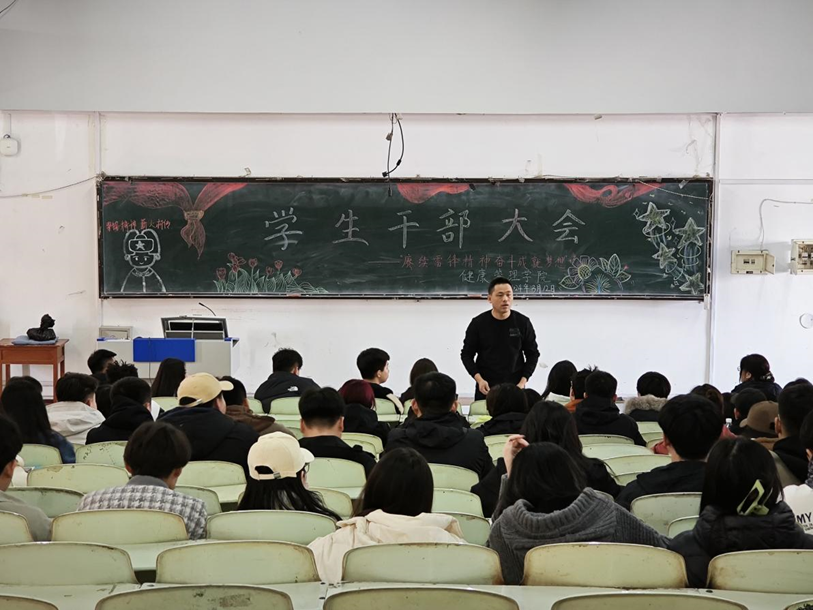 其次,常存彪书记主持召开学生会学生干部会议并就学生工作提出要求。同时提出希望学生干部们准确定位,明确职责,充分认识到学生干部不仅是管理者,也是学生的骨干、学生工作的组织者,更是为同学们服务的志愿者。学生干部在学习与工作之余,还应锻炼自己,尽快成长起来。