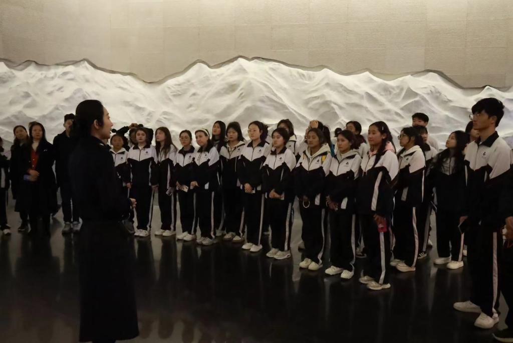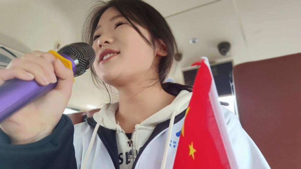 在前往沈阳的途中,在思政课教师的组织下,同学们纷纷唱起了《我和我的祖国》《我们走在大路上》《没有共产党就没有新中国》《学习雷锋好榜样》等红色歌曲,一路之上,红歌嘹亮,客车成为了移动的思政课堂。此外,为使来自西藏、青海、河南等地的同学初步了解沈阳这座城市,老师还安排了几位学生代表分别介绍了沈阳这座城市,以及自己与沈阳的故事,进一步拉近了大家与沈阳的距离,一时间,车内爱国主义情感高涨,掌声不断。