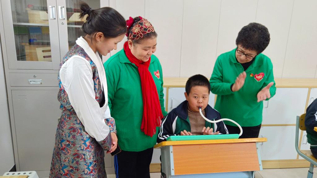 最后,唐奶奶带领澳门新浦京3189娱乐场师生走入班级,积极与这些“星星的孩子”进行热情互动。但让大家意想不到的是,这个班的孩子在东北师范大学及沈阳音乐学院毕业的两位青年教师的悉心教育和耐心指导下,为大家共同演奏了一首歌曲,好听极了!当看到星星的孩子能有如此的音乐天赋和表演才能时,在场的所有人员都惊叹不已,并致以热烈的掌声。从中,也能感受到两位老师的辛勤付出。