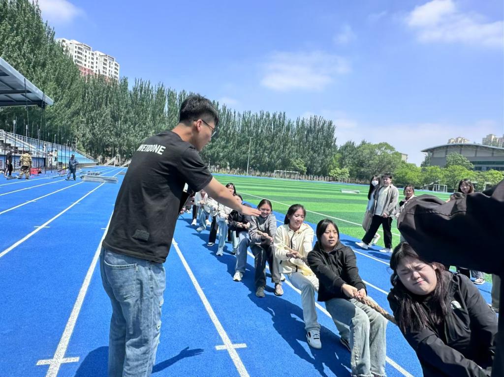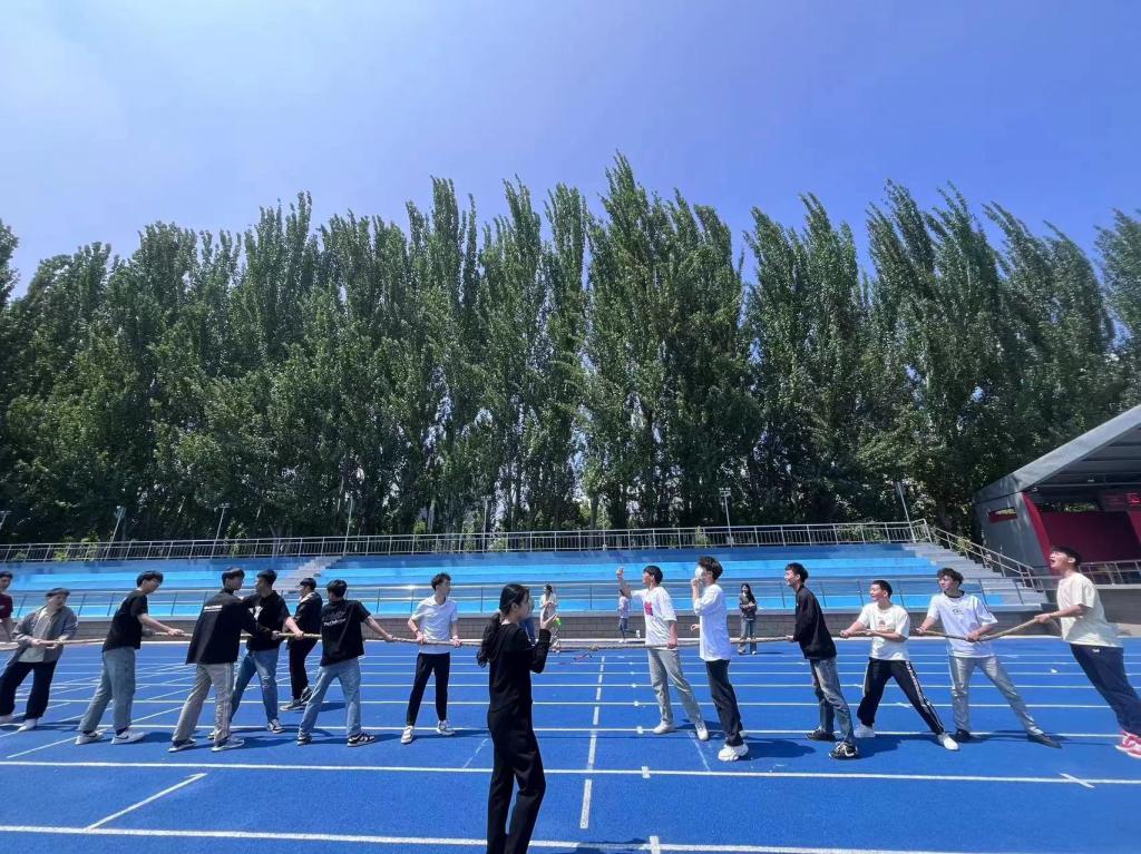 随着一声哨响,赛场上的每一支参赛队伍都全力以赴,大家紧紧抓住手中的绳子,个个斗志昂然,铆足力气整齐后仰。奋力拉扯的身影,形成了一道道美丽的风景线,充分展现了小教与设计学院学子团结一致、积极进取的精神风貌。