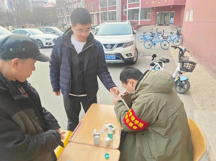 为深入开展学习贯彻习近平新时代中国特色社会主义思想主题教育,弘扬“奉献、友爱、互助、进步”的志愿服务精神,更好地推广健康知识,2024年4月至今,健康管理学院青年志愿者服务队利用课余时间开展志愿服务活动。义诊服务队开展测量血压、测量血糖志愿服务,服务地点在教职工食堂侧门门口,推拿服务队开展按摩、推拿志愿服务,服务方式为流动服务,参加义诊活动人数 60余人。