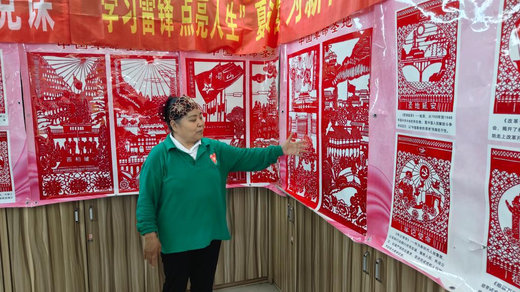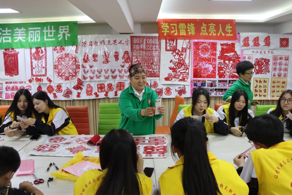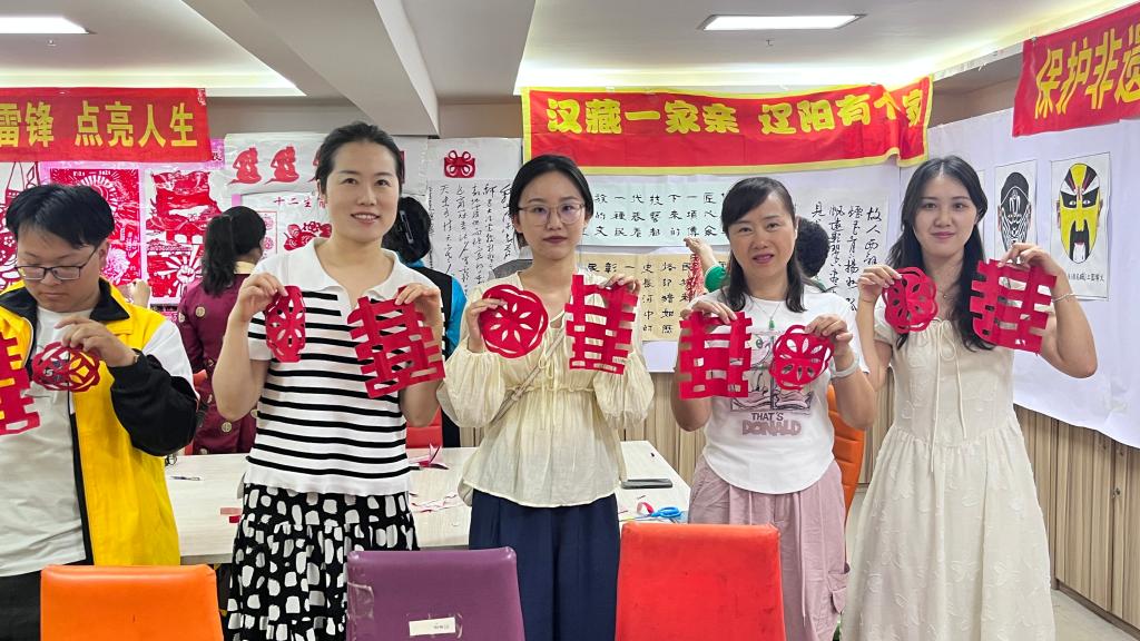 非物质文化遗产是中华优秀传统文化的重要组成部分,也是中华民族永恒的精神财富。为更好地弘扬中华优秀传统文化,传承非遗剪纸技艺,在辽宁省道德模范唐革军的邀请下,6月16日下午,马克思主义学院教师倪海、解雅梦、周诗宇、张校语、蔡孔嘉,新疆内派教师须玉红带领学生来到位于白塔区社会治理综合服务中心的唐革军工作室上了一堂以传承非遗文化为主题的“大思政课”,并同中国好人、辽阳市道德模范沈凌老师学习了非遗剪纸艺术。