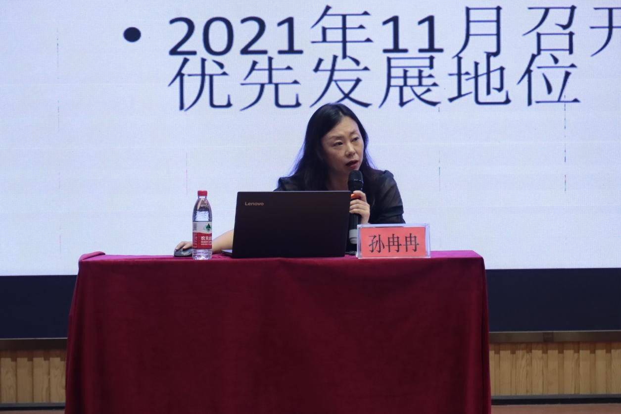 孙冉冉主任结合最新的教育政策方针,从课程改革历程、课程类别与科目设置、课程三维目标向核心素养的转变、学校课程体系建设、自主课程实施、“双减”政策的落实等方面深入浅出地讲解了基础教育课程改革的要点。在讲座过程中,孙主任通过案例分析和播放视频,聚焦课程建设,赋能学生发展,为后续教学工作的开展提供了强有力的指导。讲座现场,教师和同学们认真聆听,积极思考。