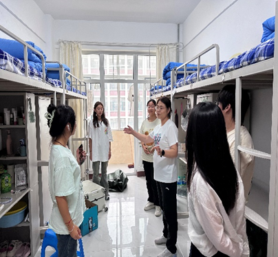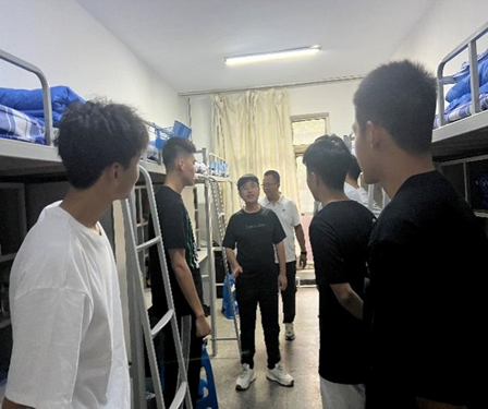 下午健康管理学院领导和辅导员老师们走访学生寝室,指导学生寝室物品摆放、关心同学是否有困难和问题。晚上各班级班主任和班导生召开新生班会,强调防火、防盗、防诈骗,做军训思想引导等。