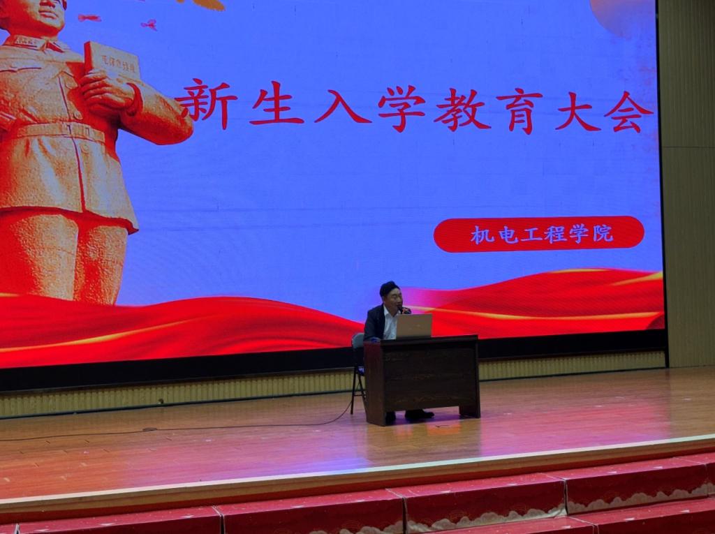2024 年 10 月 11 日晚,机电工程学院新生入学教育大会在学校电影院隆重举行。机电工程学院院长吴刚,党总支书记王乔智、副书记李森和全体辅导员出席会议,24级全体新生参加。