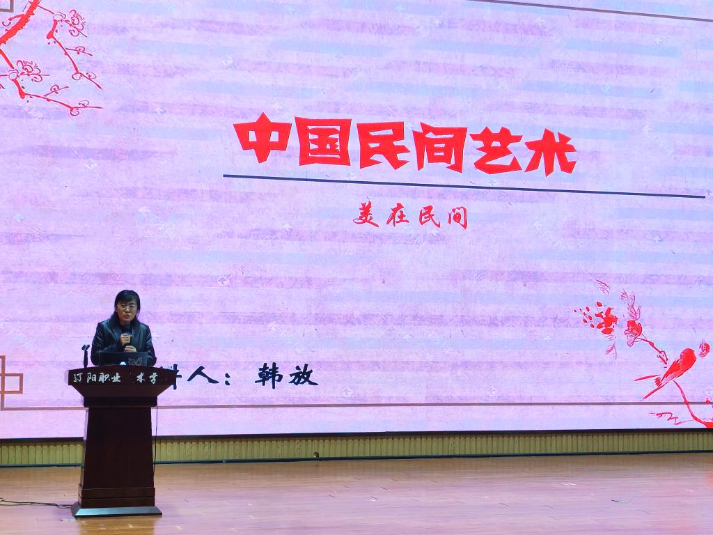 10月14日,小教与设计学院在大学生活动中心举行了一场别开生面的中国民间艺术讲座, 旨在将传统民间艺术引入课堂,打破传统教学模式的束缚,激发学生的学习兴趣和创造力。本次活动特邀辽阳市文联副主席、组联部部长韩放带来精彩讲座。小教与设计学院院长韩丽春、党总支书记佟书、教师白雪莲以及2023级学生参加活动。