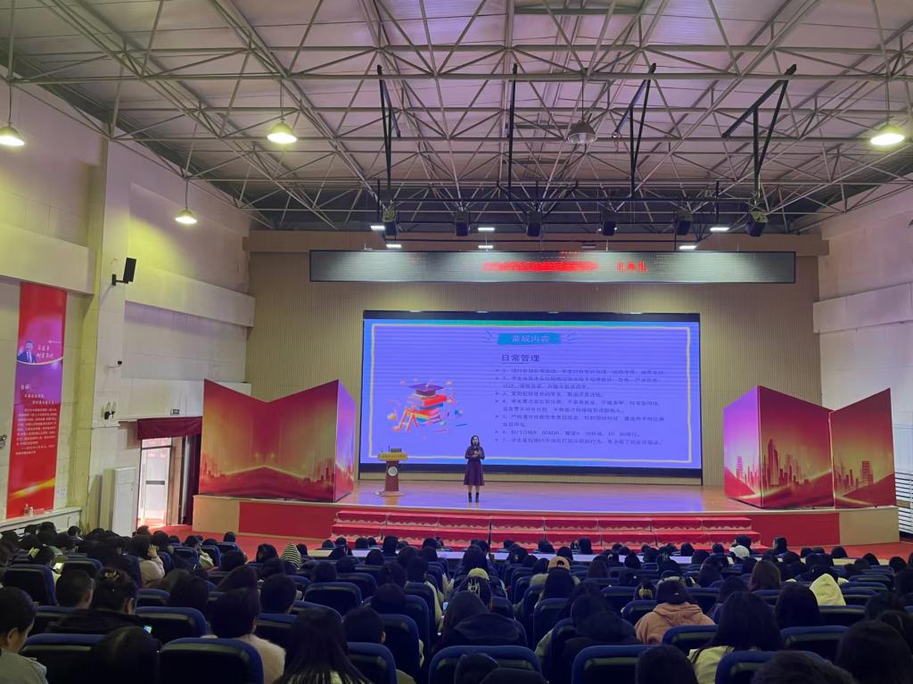 会上,佟书记从日常管理入手,强调了遵守校规校纪的重要性,为学生们明确了行为规范。她指出,“无规矩不成方圆”,我们每个人都是规章制度的守护者,要传承发扬正确的价值观,营造团结友爱、互帮互助的和谐氛围。此外,佟书记还从团结互助、以德为先、责任意识、学习提升等方面为切入点,通过讲述一些真实案例,引导学生们明确自身的责任和义务。她希望全体23级学生能够珍惜大学时光,制定合理的规划,努力学习专业知识,不断提升自己的综合素质,实现自己的人生理想。